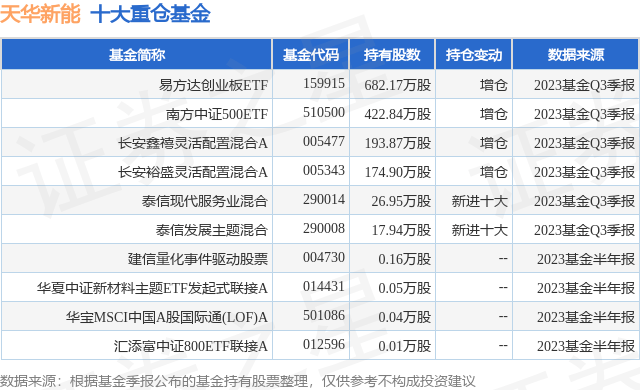 根据2023基金Q3季报公募基金重仓股数据,重仓该股的公募基金共6家,其中持有数量最多的公募基金为易方达创业板ETF。易方达创业板ETF目前规模为397.92亿元,最新净值1.828(10月26日),较上一交易日上涨0.64%,近一年下跌20.66%。该公募基金现任基金经理为成曦 刘树荣。成曦在任的基金产品包括:易方达深证100ETF联接A,管理时间为2016年5月7日至今,期间收益率为34.24%;易方达创业板ETF联接A,管理时间为2016年5月7日至今,期间收益率为-9.87%;易方达深证100ETF,管理时间为2016年5月7日至今,期间收益率为29.34%;刘树荣在任的基金产品包括:易方达深证100ETF联接A,管理时间为2017年7月18日至今,期间收益率为16.09%;易方达创业板ETF联接A,管理时间为2017年7月18日至今,期间收益率为11.89%;易方达深证100ETF,管理时间为2017年7月18日至今,期间收益率为14.19%;