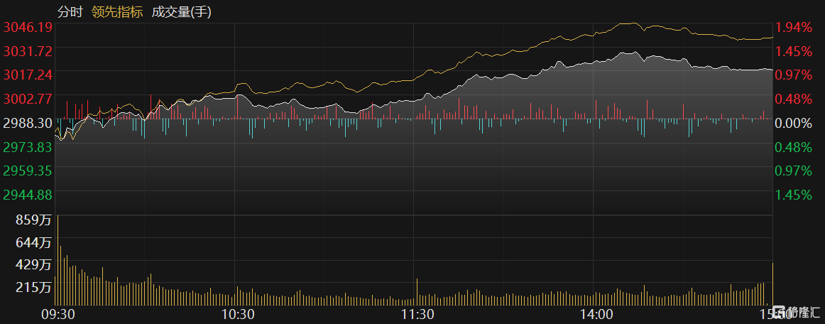 今日A股大盘低开高走,三大指数集体收涨,创业板指领涨,沪指四连涨收回3000点。截至收盘,沪指涨0.99%报3017.78点,深证成指涨2.14%,创业板指涨2.88%。两市超4000只个股上涨。