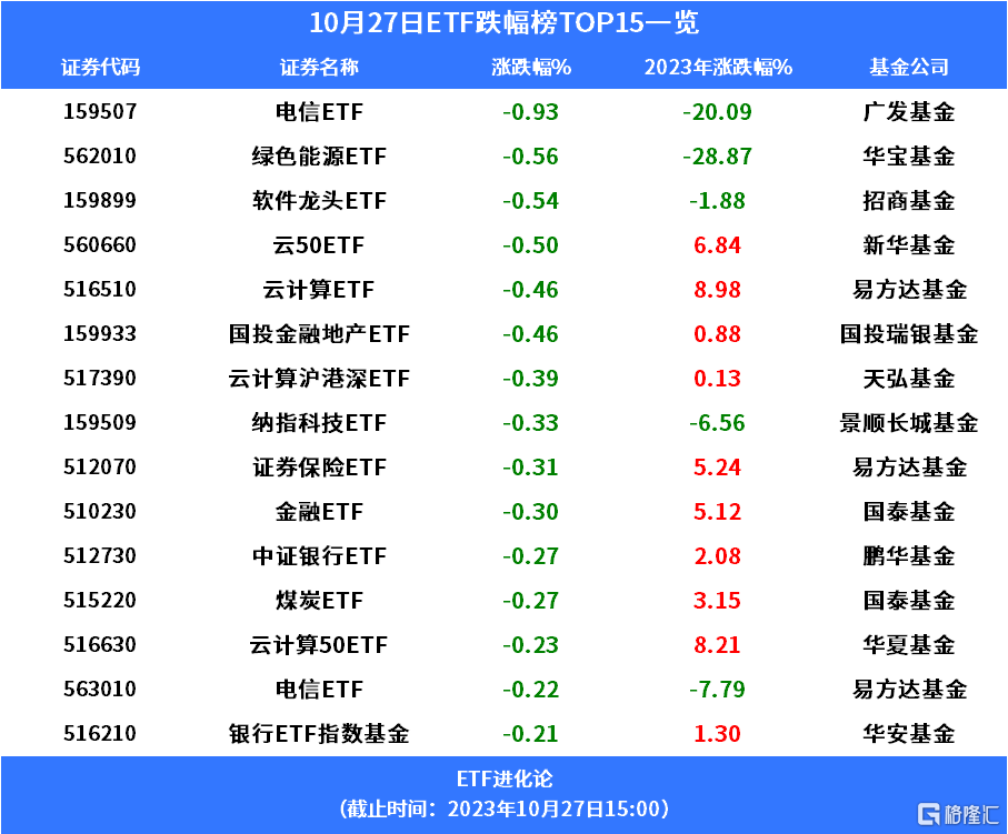 电信板块走弱,电信ETF跌0.93%。云计算板块普跌,云50ETF跌0.5%。金融板块下挫,证券保险ETF跌0.3%。