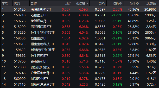 港股医药赛道ETF之所以表现强劲,主要还是在周五其成分股迎来大幅上涨。比如药明生物、信达生物、石药集团、中国生物制药等,都是周五港股市场的大热门。