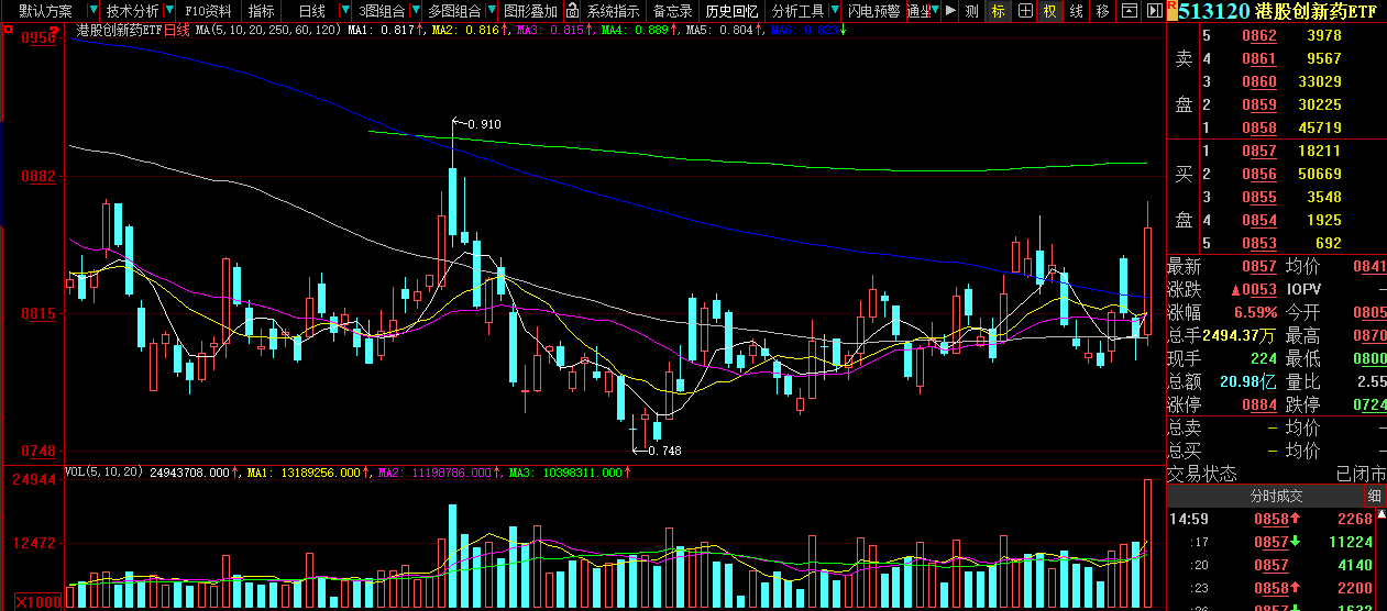 追涨强势ETF,也就是在行情趋势发生重要变化之后,主动积极进攻的最佳策略。尤其是港股创新药ETF,今日成交量明显放大,达到20.98亿元,较前一交易日放量一倍,说明资金的热度很高。