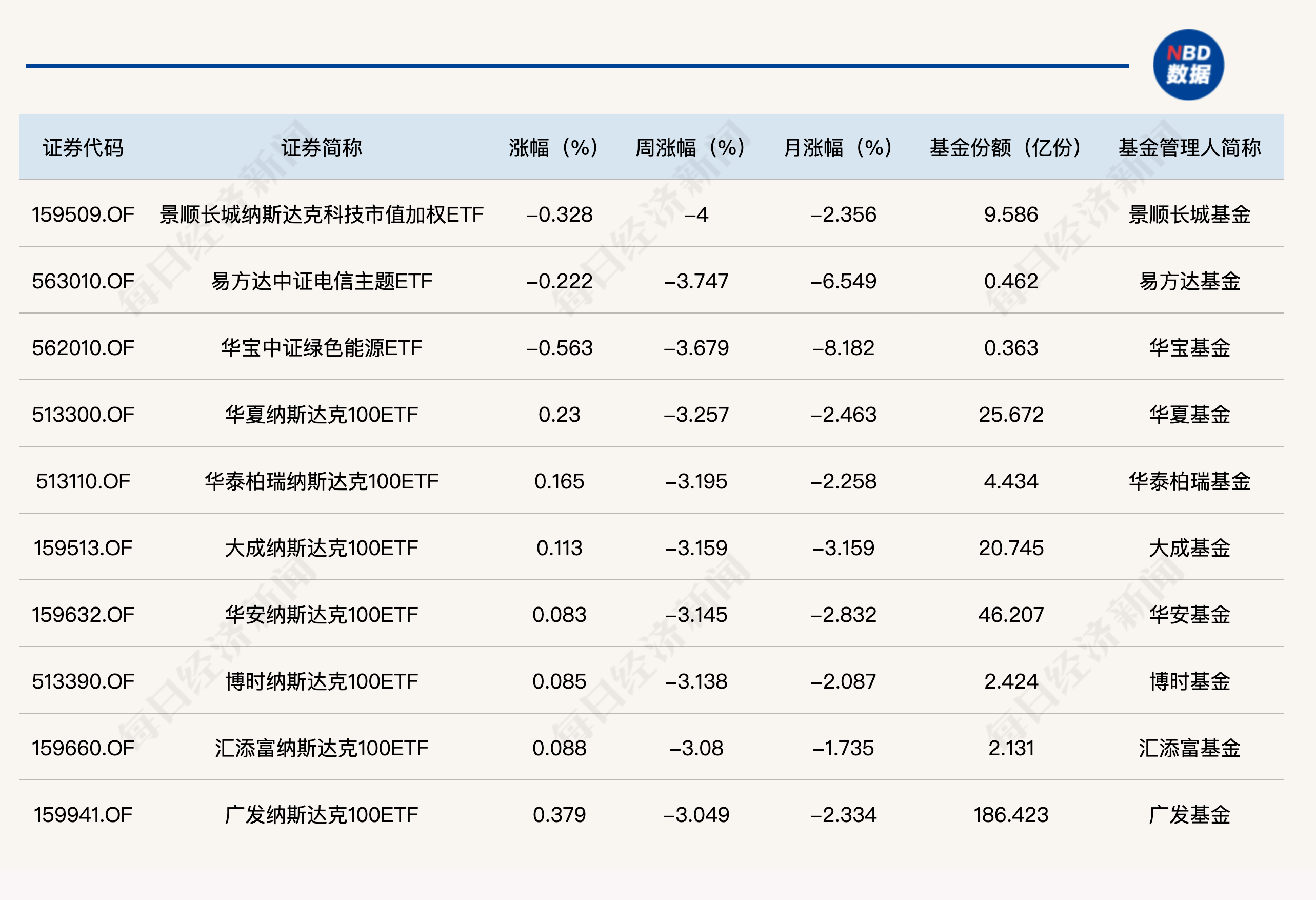 不过另一方面,本周依然有部分ETF产品出现了下跌,而这部分产品依旧是QDII为主。比如景顺长城的纳指科技ETF(159509)本周下跌4%,还有华夏、华泰柏瑞、大成等公司旗下的纳斯达克100ETF,本周跌幅都超过3%。其中,规模最大的是广发纳指ETF(159941)其份额规模达186亿份,本周跌了3.05%。但从全年来看,布局海外市场的纳指相关ETF今年依旧取得了较大的涨幅。
