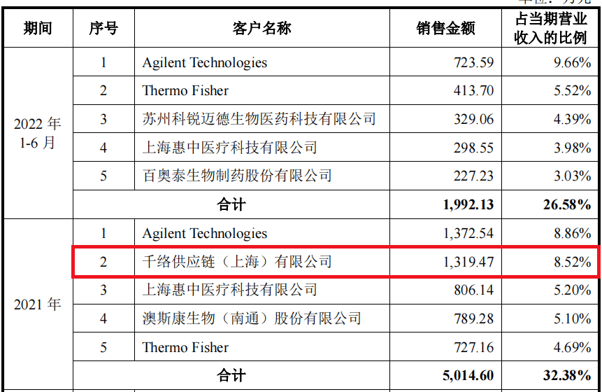 在2021年,赛分科技的前五大客户中突然出现了一家名为“千络供应链”的公司引起了上交所的注意。