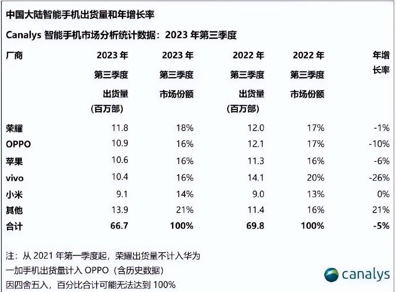 据第三方调研机构Canalys公布的三季度中国智能手机市场报告,荣耀第三季度整体市场份额登顶,占据18%份额。根据此前Counterpoint消息,荣耀Magic V2在三季度中国大折叠屏市场销量排名第一,被看做是助力荣耀Q3登顶的核心驱动力。
