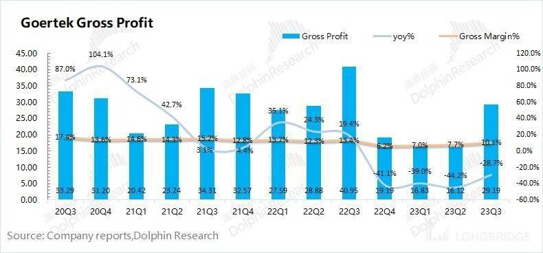 歌尔股份 2023 年第三季度实现毛利 29.19 亿元,同比下滑 28.7%,毛利端的较大下滑主要由毛利率大幅下滑所致。