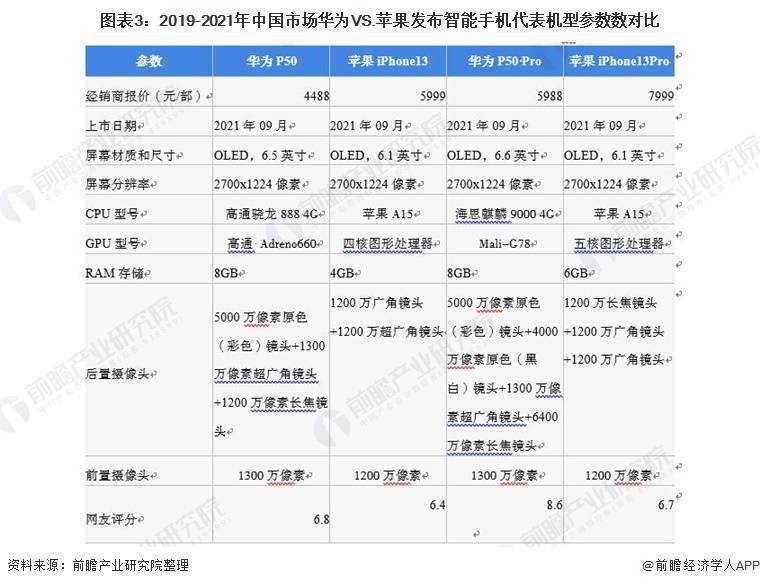 从2021年9月华为和苹果最新发布的智能手机机型对比来看,华为和苹果手机从网友评分来看,华为口碑更好,尤其是华为P50 Pro,网友评分高达8.7分。