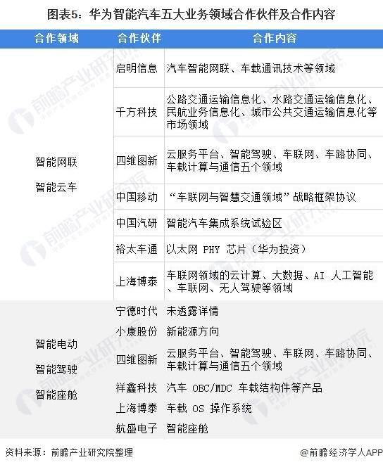 同时,华为在智能汽车五大业务领域,均与相关企业在产业链上下游建立了合作关系,联合了通信、整车、零部件以及互联网企业打造了智能汽车生态圈。