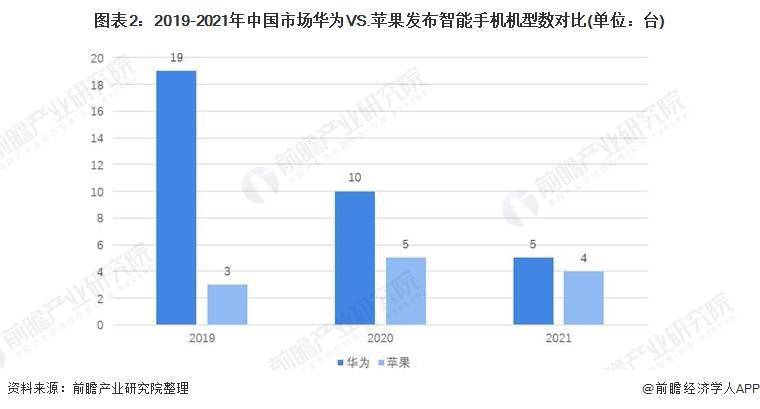 2019-2021年华为发布智能手机类型数总体呈现下降趋势,但其类型数总体高于苹果,苹果每年发布新机型数量基本保持在3-5种机型区间。从各品牌5G手机的发布日期及产品参数看,华为依托海思芯片供给能力在5G手机领域竞争优势明显,5G新产品发布时间密集,相较而言,苹果在5G手机领域则略逊一筹。