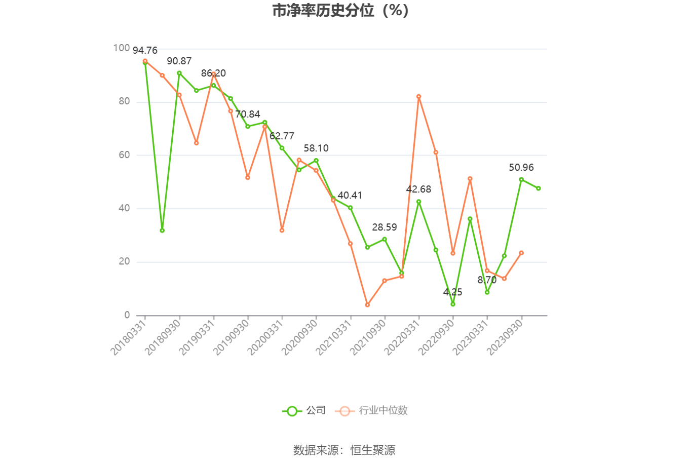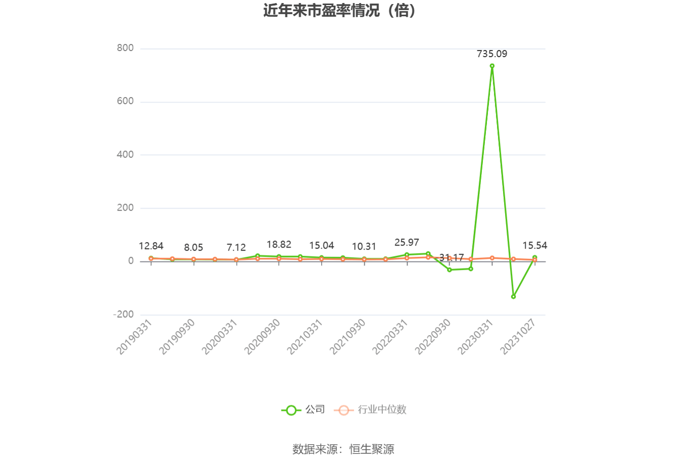 市盈率为负时,不显示当期分位数,会导致折线图中断。