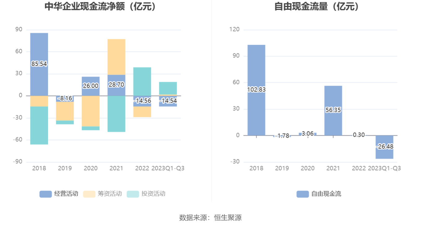进一步统计发现,2023年前三季度公司自由现金流为-26.48亿元,上年同期为30.97亿元。