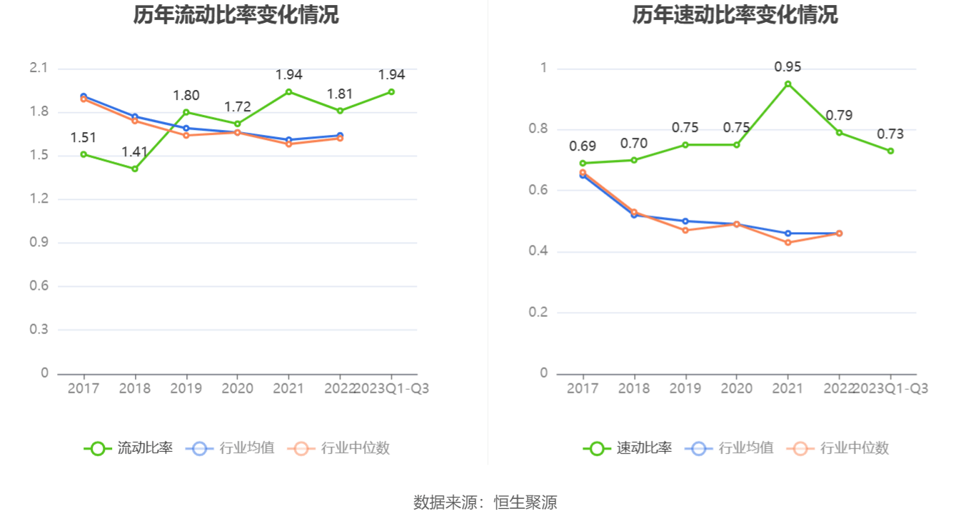 2023年前三季度,公司流动比率为1.94,速动比率为0.73。