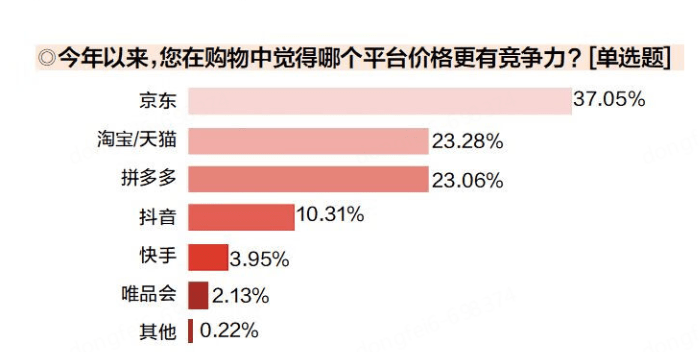 在对各大渠道价格的统计中,针对“哪个渠道的价格更有竞争力”的问题,有超过37.5%的受访者选择了京东,占比位于第一。