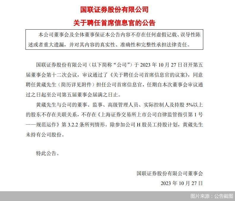 原标题:国联证券聘任黄葳担任公司首席信息官