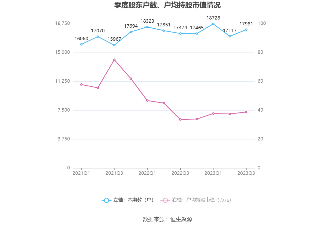 筹码集中度方面,截至2023年三季度末,公司股东总户数为1.8万户,较上半年末增长了864户,增幅5.05%;户均持股市值由上半年末的37.46万元上升至38.81万元,增幅为3.60%。
