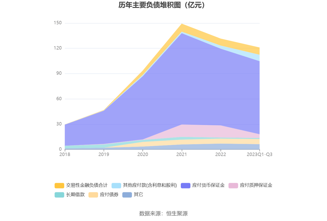 负债重大变化方面,截至2023年三季度末,公司应付质押保证金较上年末减少69.35%,占公司总资产比重下降6.19个百分点;应付货币保证金较上年末减少4.70%,占公司总资产比重上升0.94个百分点;其他应付款(含利息和股利)较上年末增加104.34%,占公司总资产比重上升2.79个百分点;应付票据较上年末减少49.26%,占公司总资产比重下降1.01个百分点。