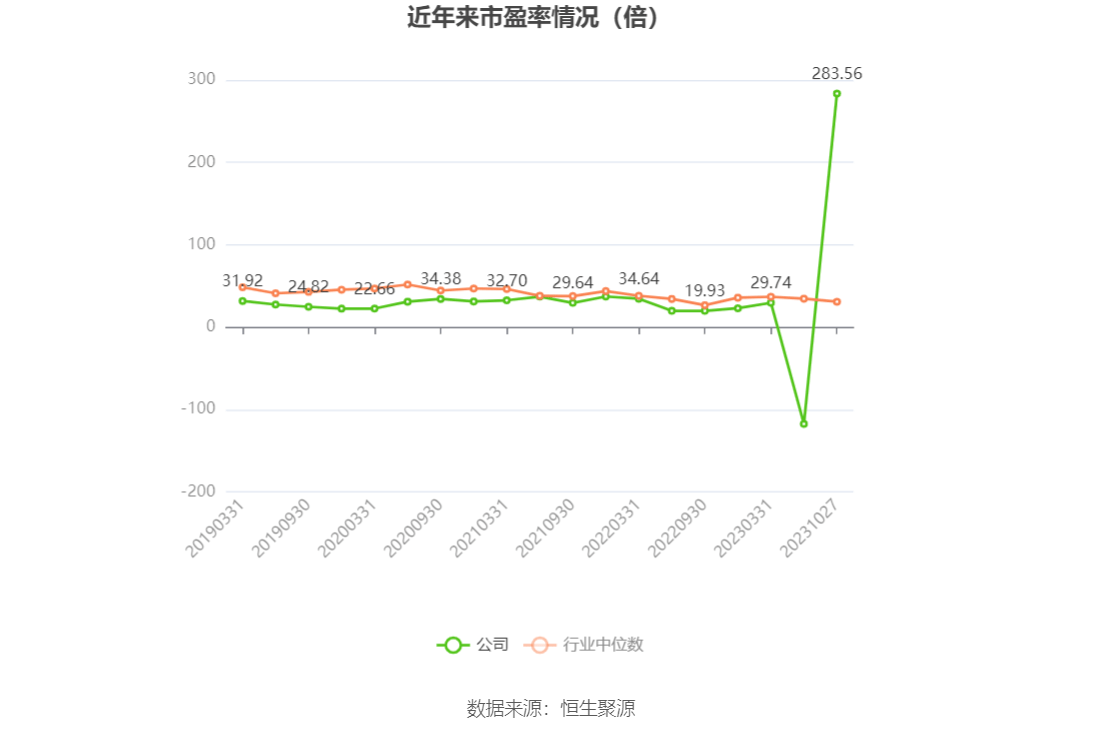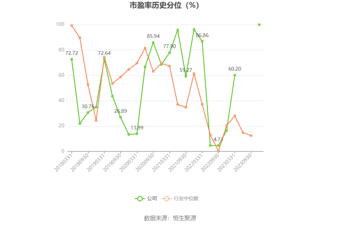 市盈率为负时,不显示当期分位数,会导致折线图中断。