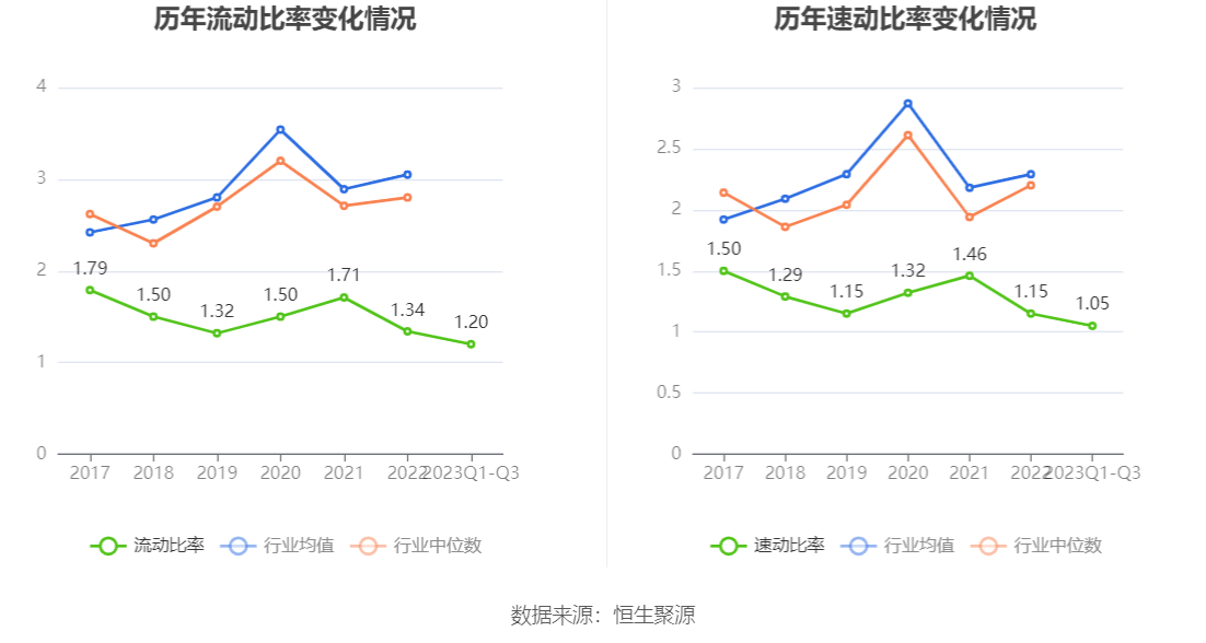 2023年前三季度,公司流动比率为1.20,速动比率为1.05。