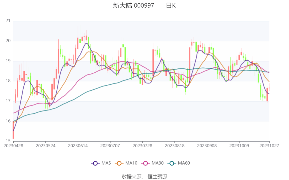 以10月27日收盘价计算,新大陆目前市盈率(TTM)约为283.56倍,市净率(LF)约为2.97倍,市销率(TTM)约为2.58倍。