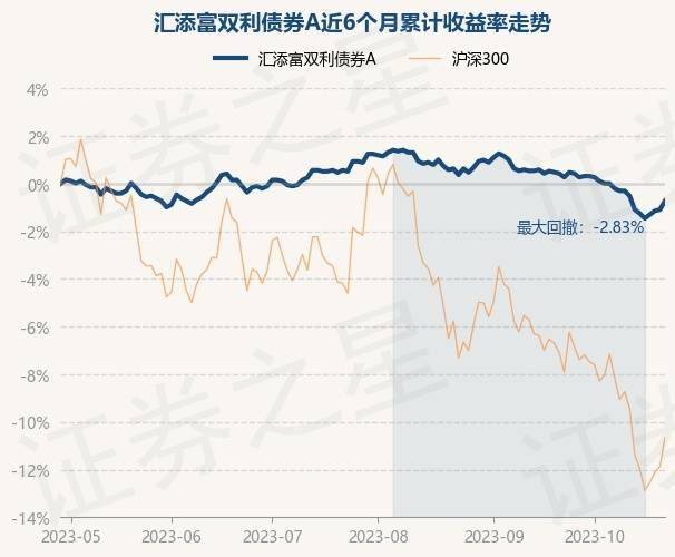 证券之星消息,10月27日,汇添富双利债券A最新单位净值为1.895元,累计净值为1.982元,较前一交易日上涨0.37%。历史数据显示该基金近1个月下跌1.04%,近3个月下跌1.61%,近6个月下跌0.73%,近1年下跌0.23%。该基金近6个月的累计收益率走势如下图: