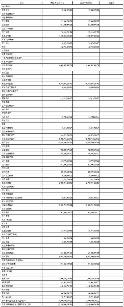 2023年起首次执行新会计准则或准则解释等涉及调整首次执行当年年初的财务报表
