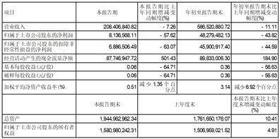 一、 主要财务数据