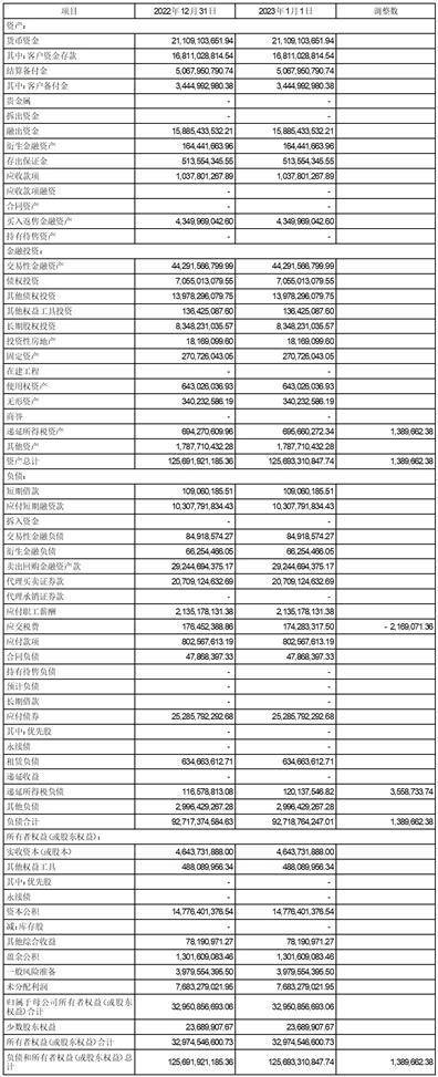 2023年起首次执行新会计准则或准则解释等涉及调整首次执行当年年初的财务报表