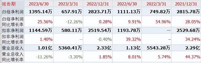 最近三年,公司的营收收入分别为1.59亿元、2.29亿元和2.33亿元,上年的营收增速为1.85%。对应的扣非净利润分别为1884万元、2529万元和2519万元,上年的增速为-0.40%。