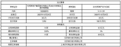 公司于2023年9月20日实施了发行(债券名称:光明房地产集团股份有限公司2023年度第四期中期票据;债券简称:23光明房产MTN004),期限为1+1+1年,起息日为2023年9月22日,实际发行总额为人民币5亿元,发行利率为3.20%,发行价格为100元/百元面值。具体内容详见2023年9月26日在《上海证券报》、《证券时报》及上海证券交易所网站www.sse.com.cn披露的(临2023-053)。