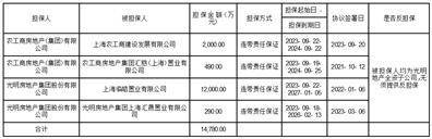 1、依照《关于核定2022年度对外担保额度的提案》对外担保总额预计及本次担保额度调整,光明地产全资子公司农工商房地产(集团)有限公司(下称“农房集团”)为光明地产下属10家控股子公司提供担保,其中: