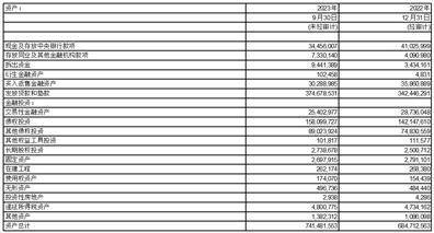 截至2023年9月30日,本集团资产总额7,414.82亿元,较上年末增加567.69亿元,增幅8.29%。