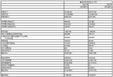 截至2023年9月30日止九个月,本集团实现净利润44.99亿元,较上年同期增加0.62亿元,增幅1.40%。实现营业收入102.48亿元,较上年同期下降4.10亿元,降幅3.84%。业务及管理费为26.05亿元,较上年同期增加1.80亿元,增幅7.43%。成本收入比25.42%,较上年同期上升2.66个百分点。