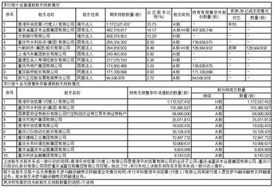 (2)重庆渝富资本运营集团有限公司直接持有本行A股417,753,817股,通过其子公司重庆渝富(香港)有限公司持有本行H股74,566,000股;其关联方重庆川仪自动化股份有限公司、重庆川仪微电路有限责任公司、重庆四联投资管理有限公司、西南证券股份有限公司、重庆宾馆有限公司、重庆农村商业银行股份有限公司、重庆联合产权交易所集团股份有限公司、杨雨松持有本行A股31,173,547股,合并持有本行股份523,493,364股,占本行总股份的15.07%。