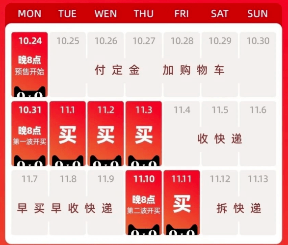 今年淘宝双十一的时间线与去年非常接近,甚至说时间几乎一致。