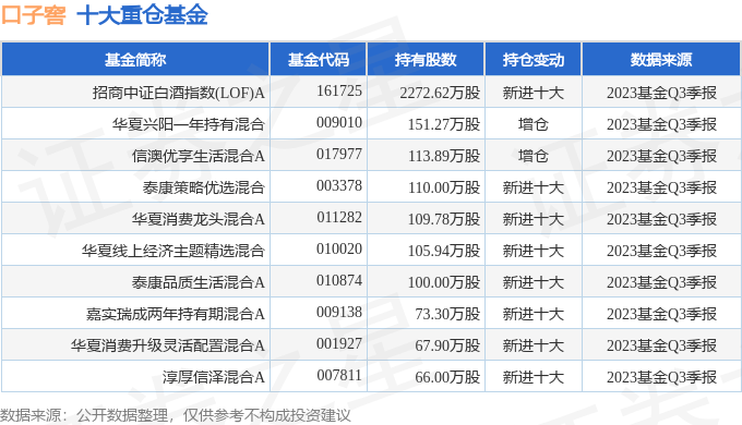 重仓口子窖的前十大基金见下表: