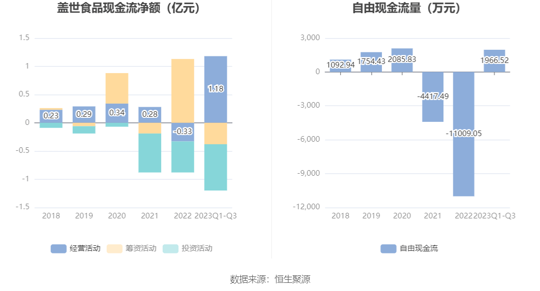 进一步统计发现,2023年前三季度公司自由现金流为1966.52万元,上年同期为-6294.73万元。