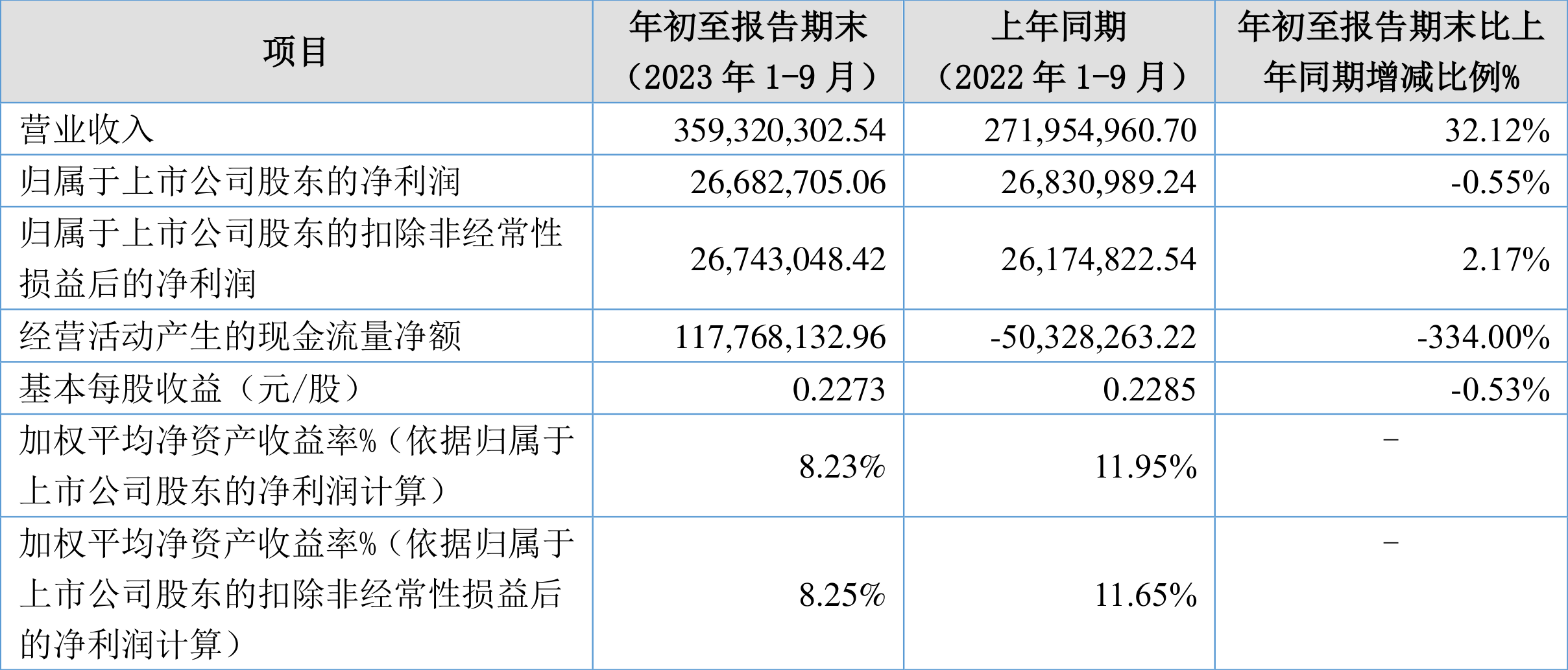 根据三季报,公司第三季度实现营业总收入1.34亿元,同比增长38.18%,环比增长3.37%;归母净利润1736.35万元,同比增长30.67%,环比增长21.26%;扣非净利润1718.45万元,同比增长30.13%,环比增长22.32%。