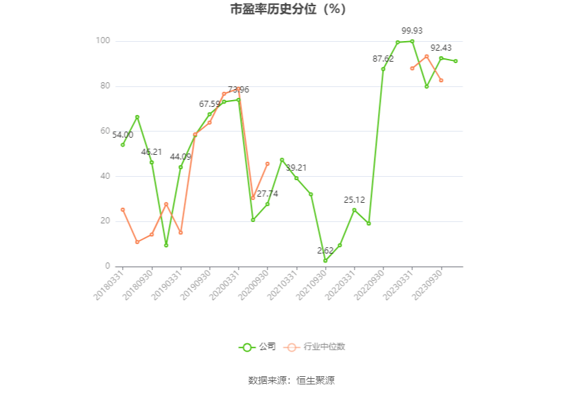 市盈率为负时,不显示当期分位数,会导致折线图中断。