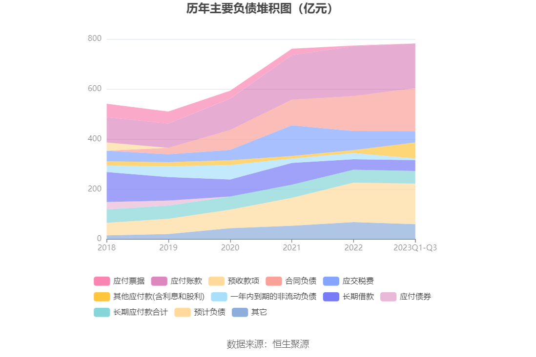 负债重大变化方面,截至2023年三季度末,公司其他应付款(含利息和股利)较上年末增加459.28%,占公司总资产比重上升2.60个百分点;合同负债较上年末增加23.18%,占公司总资产比重上升2.11个百分点;应交税费较上年末减少41.11%,占公司总资产比重下降1.25个百分点;应付账款较上年末减少10.63%,占公司总资产比重下降0.28个百分点。