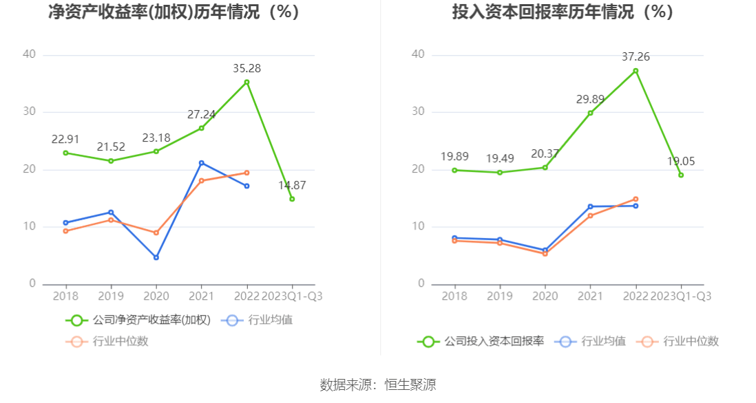 数据显示,2023年前三季度公司加权平均净资产收益率为14.87%,较上年同期下降14.86个百分点;公司2023年前三季度投入资本回报率为19.05%,较上年同期下降9.97个百分点。