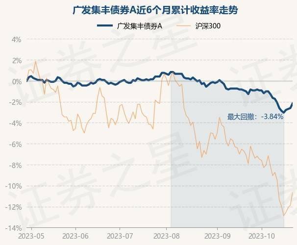 证券之星消息,10月27日,广发集丰债券A最新单位净值为1.113元,累计净值为1.357元,较前一交易日上涨0.45%。历史数据显示该基金近1个月下跌1.33%,近3个月下跌2.54%,近6个月下跌2.11%,近1年上涨2.68%。该基金近6个月的累计收益率走势如下图: