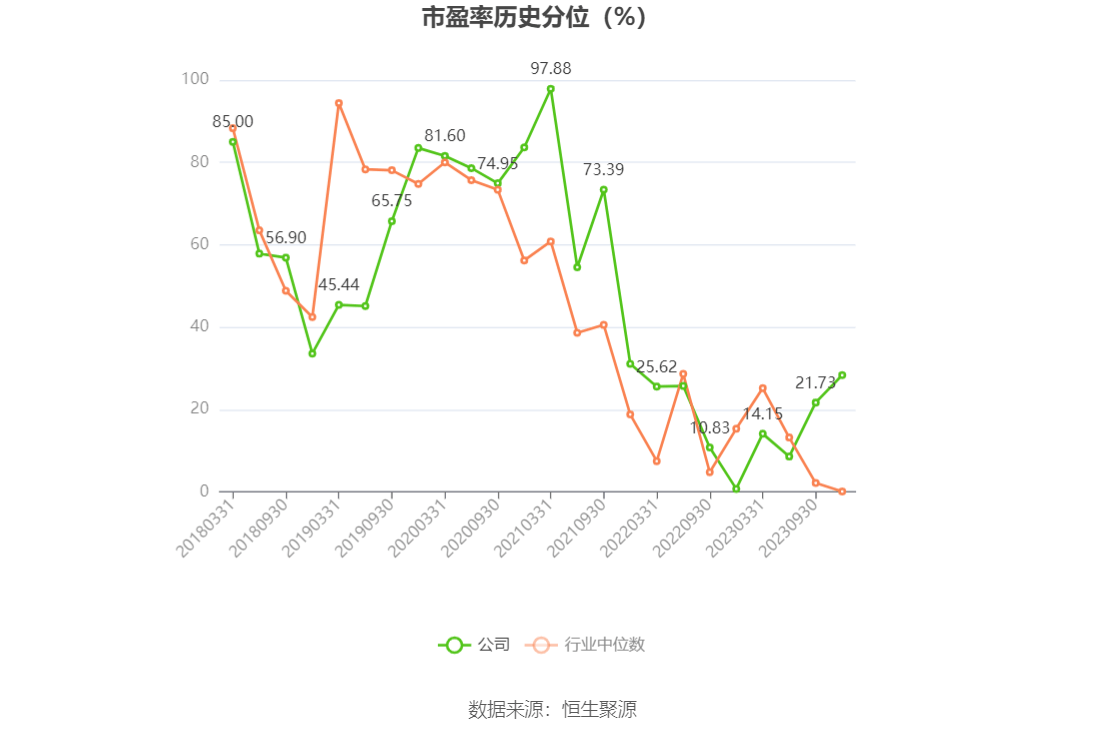 市盈率为负时,不显示当期分位数,会导致折线图中断。