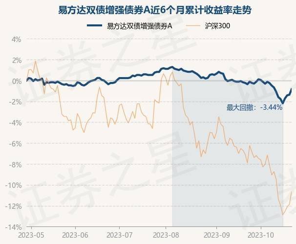 证券之星消息,10月27日,易方达双债增强债券A最新单位净值为1.692元,累计净值为2.202元,较前一交易日上涨0.53%。历史数据显示该基金近1个月下跌0.7%,近3个月下跌1.63%,近6个月下跌0.82%,近1年上涨0.12%。该基金近6个月的累计收益率走势如下图: