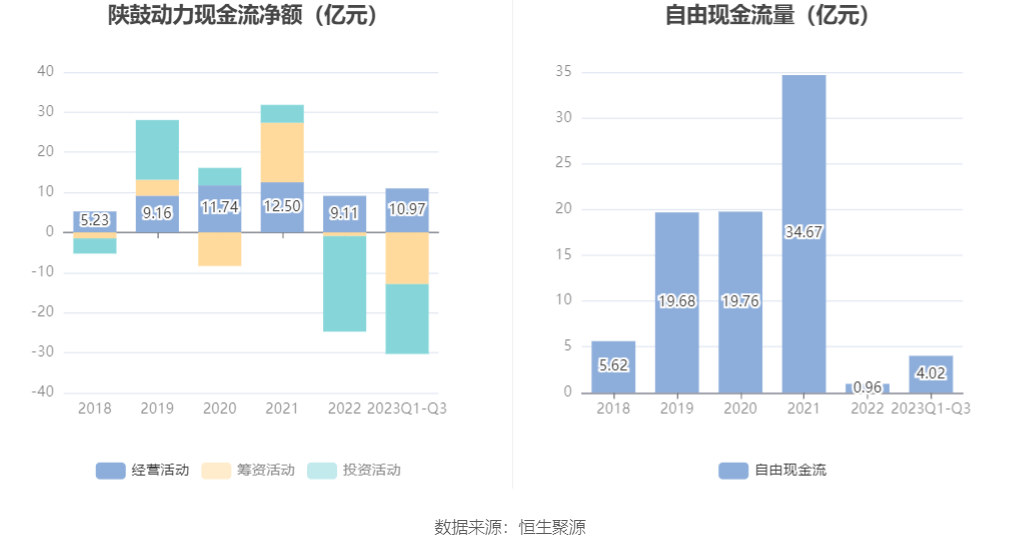 2023年前三季度,公司经营活动现金流净额为10.97亿元,同比增长17.61%;筹资活动现金流净额-12.91亿元,同比减少19.41亿元;投资活动现金流净额-17.44亿元,上年同期为-2.21亿元。