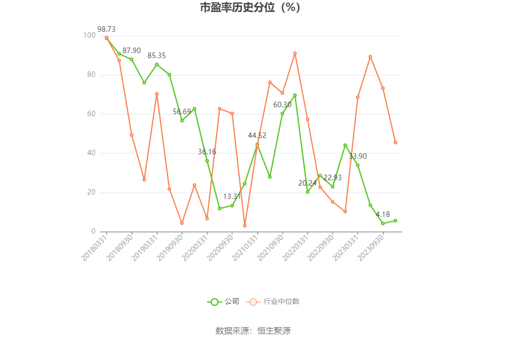 市盈率为负时,不显示当期分位数,会导致折线图中断。