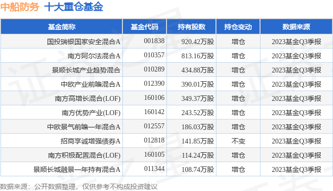 重仓中船防务的前十大基金见下表: