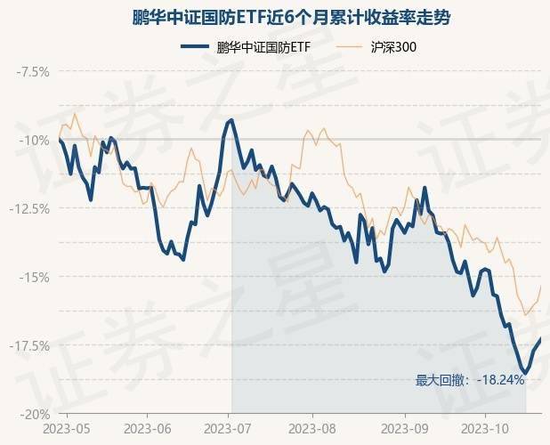 证券之星消息,10月27日,鹏华中证国防ETF最新单位净值为0.7003元,累计净值为1.4006元,较前一交易日上涨0.5%。历史数据显示该基金近1个月下跌4.19%,近3个月下跌10.94%,近6个月下跌14.58%,近1年下跌30.98%。该基金近6个月的累计收益率走势如下图: