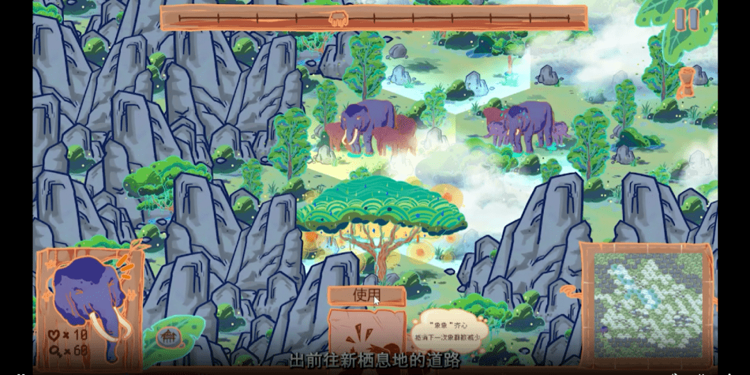 比如《出狮》是以传统舞狮题材为蓝本,让人意识到原来舞狮还能以这样的形式出现在动作游戏里;《大象奇遇记》以云南大象北移南归事件为背景,讲述了象群的旅途故事,游戏中玩家扮演的不是人类而是大象,游戏用这种方式让玩家在“人象冲突”当中换位思考;《寻找比泊》则通过2D解谜玩法,引导玩家去探索双向情感障碍患者的内心世界……