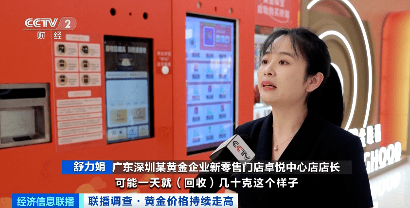 广东深圳某黄金企业新零售门店卓悦中心店店长 舒力娟:我们(这台机器)现在单日黄金回收量达到一千克左右,国庆期间可能一天回收几十克。