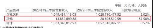 这些新品的具体销售如何,李子园并未披露。但财报显示,2023年前三季度,除含乳饮料之外的其他产品仅实现营收1385.27万元,同比暴跌51.58%。