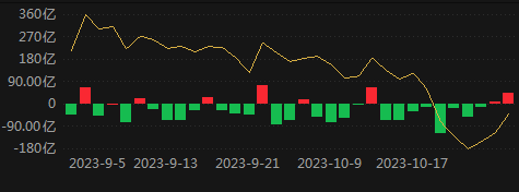 周五午后北向资金加速进场,全天净买入46.68亿元,为连续两日买入;其中沪股通净买入18.98亿元,深股通净买入27.7亿元。本周,北向资金净卖出4.46亿元(本周仅有四个交易日),连续4周撤离,10月迄今累计净卖出376.36亿元。